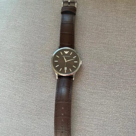 Snyggt Armani armbandsur för kvinna med svart mesh-länk och rektangulär urtavla. Levereras i originalask med mörk insida och tydliga visare på tavlan.
