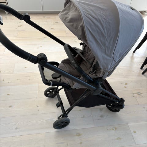 Svart Cybex beezy sittvagn med bygel, sele och stor varukorg under. Smidig vagn med svängbara framhjul och justerbart ryggstöd. Den blir liten när man fäller ihop den väldigt fin och sparsamt använd finns EN repa som finns på bild annars inga konstigheter med vagnen!!