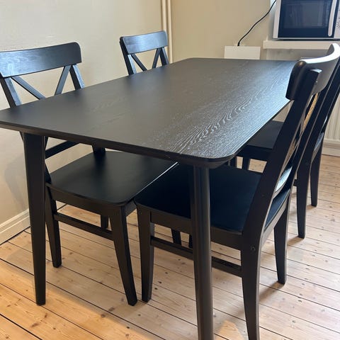 Klaffbord 80x80 cm (utan klaff). 120 cm med klaff. Gott skick men något märke/skav, till exempel på bordsskivan (se bild). Därav priset 😊