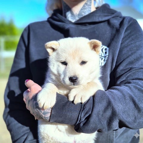 Hon är 6 år och har haft en kull innan. Hon är inte kastrerad så hennes nästa löp borde komma runt september