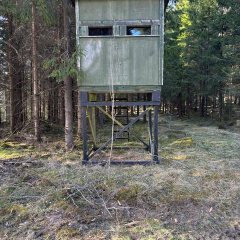 Jakttorn byggt av IBC tank. Man sitter otroligt skönt i dem. Regn och vindskydd. Hjälper även en heldel mot vittring. De är 3,6 meter men går att bygga andra höjder givetvis. Bästa jakttornen jag använt.