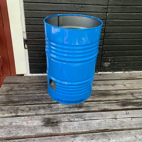 Galvaniserade järnfat, plåtfat, bränsle dunkar, betong ring, plintar, trummor.