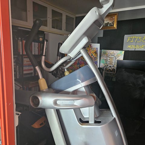 Mycket stabil crosstrainer med träningsdator och tydlig display med flera knappar för program och inställningar. Stadig modell med stora fotplattor och både fasta och rörliga handtag.