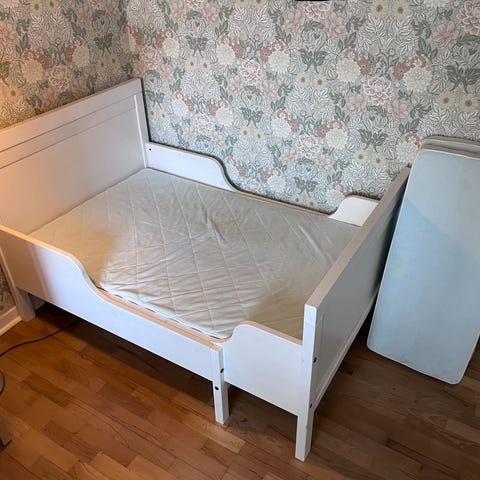Sängen är nedmonterad men är enkel att sätta ihop.
