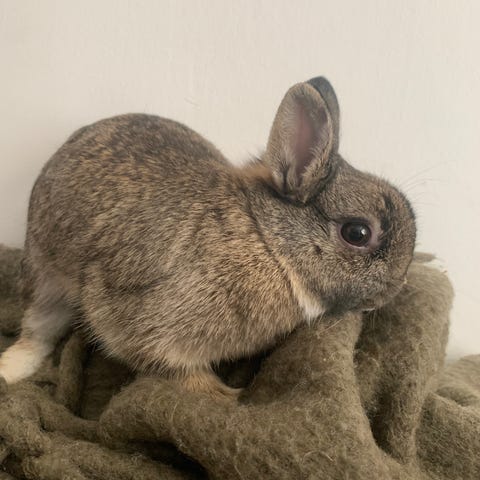 Vi har två stycken jättegosiga och sociala kaninungar som söker sitt föralltid hem. Mamman och pappan är två lejonhuvade dvärgkaniner med inslag av dalmatiner och hermelin, vilket också betyder att kaninerna inte blir så stora. Vi tror att den ena är en kille men lite tidigt att säga.