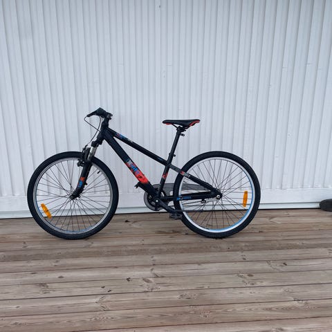 Blå Cannondale Cujo med 24" hjul och grova däck. Skivbromsar, 8 växlar och ny bakväxel som knappt är använd. Allt funkar perfekt.