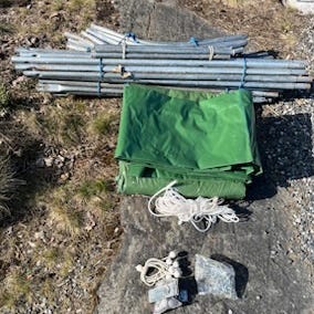 stomme till ett mycket kraftigt tält /garage / förvaring /båt. vi har använt det vid reparation av husbil/husvagn , tyvärr har vi inga preseningar till det dom blåste sönder. storlek se bild. bredd ca810 djupca 660 gavel höjd ca250 nock ca460.