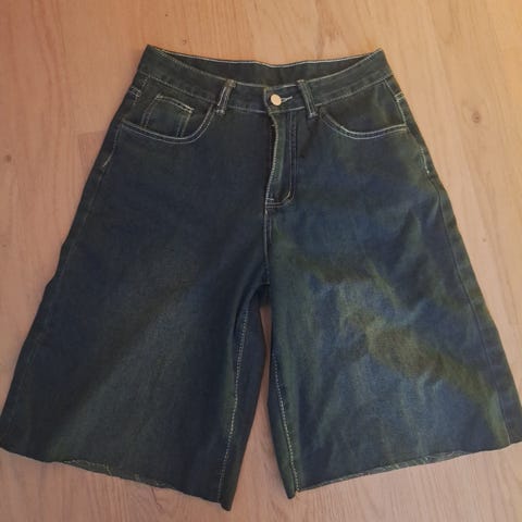 Mörkblå jeans från Lindex. Byxorna har en knapp och dragkedja framtill. De har två fickor fram och två bakfickor. Byxorna är i en kortare, rak modell.