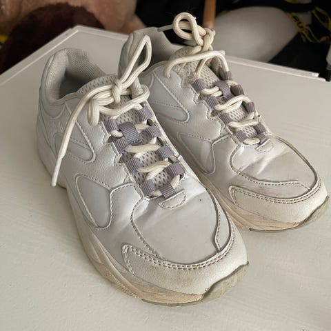 Jag säljer ett par vita skor, märke Nfinity, modell Fearless, för cheerleading/cheerleader, storlek 33,5 (innermått enligt tabell 20 cm), i fint använt skick!
