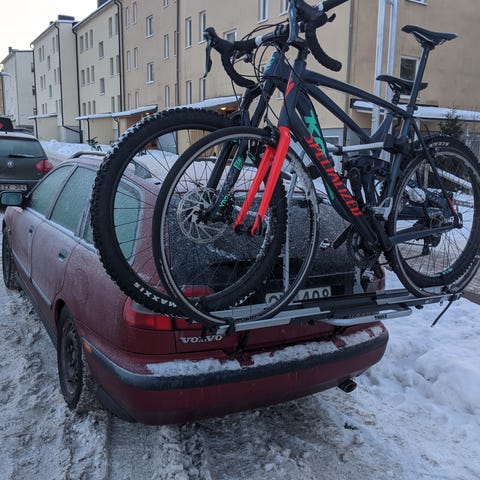 Fällbar konstruktion för åtkomst till bagageluckan med hållaren monterad.