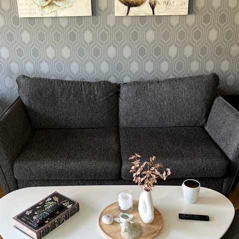 Soffan är i bra skick och på bild tre kan ni se strukturen på textilen. Har varit i ett hem utan husdjur.