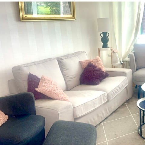 Kivik 3-sitssoffa med matchande förvarings fotpall, som jag använt som schäslong.
