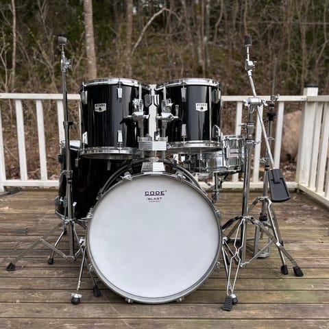 Säljer mitt Tama Starclassic Birch, Made in Japan. Stommarna är i björk (och låter hur fett som helst). Originalfärg är vit men har lackats om professionellt till green sparkle.