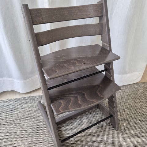 Nya modellen Stokke Tripp Trapp barnstol i grått trä