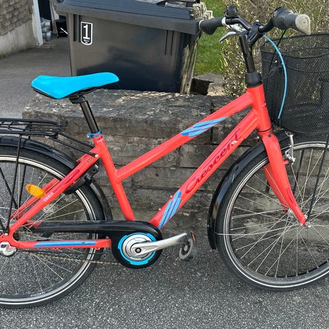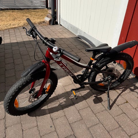 Röd Specialized riprock med 24" hjul och grova däck. Utrustad med skivbromsar fram och bak samt 8 växlar.