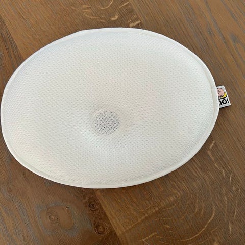 Mimos babykudde i vit färg med rund form och nedsänkt mitt. Mycket sparsamt använd i ett djur- och rökfritt hem. I nyskick. Levereras i originalförpackning med info om kudden på utsidan.