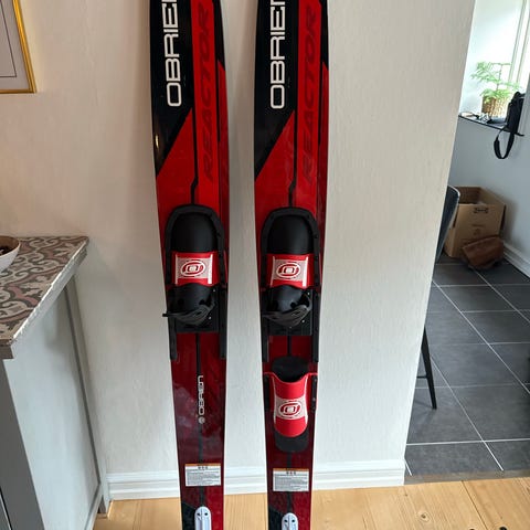 Vattenskidlina med flerfärgat rep och svart handtag med gula öglor. I ena änden finns en ögla med metallfäste för enkel montering. 23 meter lång.