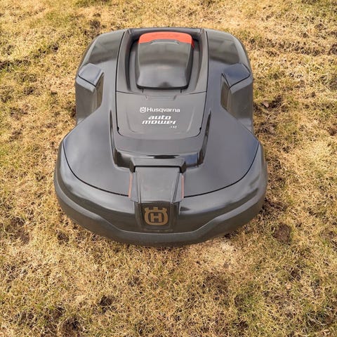 Robotgräsklippare Husqvarna 420. För slinga. Gräsklipparen har skrapmärken på frontens framsidor. Men den är nyservad och utan anmärkning vad gäller funktion. Laddstation ingår, liksom slingkabel på rulle, 10 skarvkopplingar, 10 kabelklämmor till laddstation samt kabelbrottsdetektor.