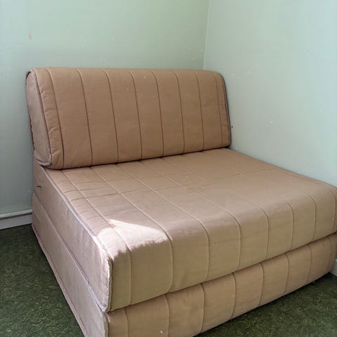 Säljer en stilren och bekväm TEDDY fåtölj i rostfärg (Manchester-tyg). Djup sits och moduldesign som gör den både snygg och flexibel. Fåtöljen är fällbar och blir enkel säng vid behov (se bild).