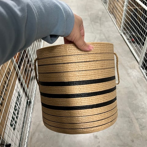 Flätad korg i naturmaterial med handtag