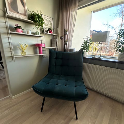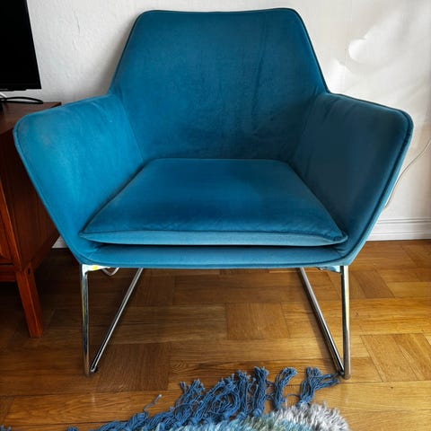 Säljer en stilren och bekväm BRITTAN fåtölj från Ellos Home i rostfärg sammet. Djup sits och tjock fyllning i skum som gör den både snygg och bekväm.