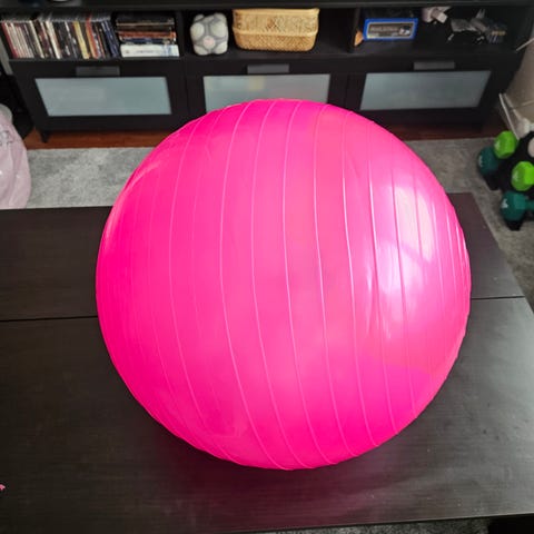 Säljer en blå gymboll i fint skick. Perfekt för hemmaträning, balansövningar eller att använda som ergonomisk sittstol vid skrivbordet.