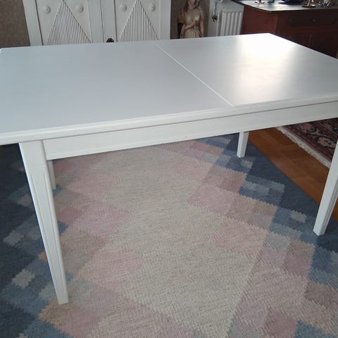 matbord från IKEA (BJURSTA) i vit färg.