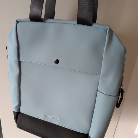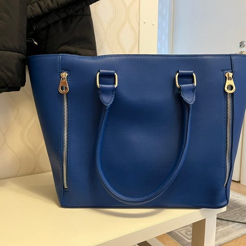 blå handväska