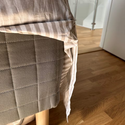 Vi har alltid haft madrasskydd över och sängen är i väldigt gott skick.