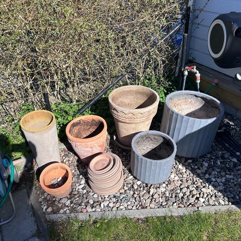 Säljer ett blandat paket med grillbriketter, ved, tändare och lite olika krukor. Det följer även med några oanvända slangklämmor i förpackning.
