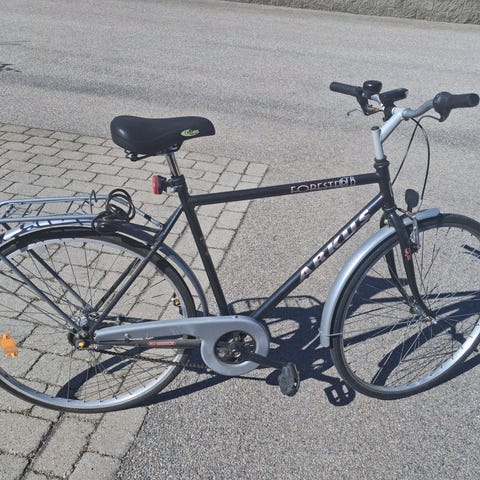 Crescent landsvägscykel med 8 x 3 växlar, 28" hjul, herrmodell i silver med pakethållare och skärmar. Utrustad med kedjeskydd.