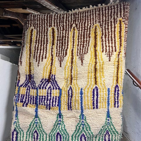 Fin handknuten matta i ull från Marocko. Köpt på Etsy av en verifierad säljare. 260/160cm utan fransar. Kan eventuellt behövas tvättas/skakas för att fräscha upp fibrerna, men annars inget att anmärka på.