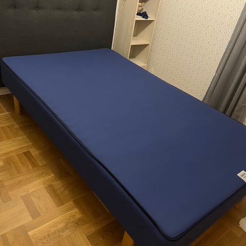 Kommer med tjock (ca 18 cm) kvalitets och super skönt skummadrass från Wellpur som har alltid varit täkt med madrasprotektor och är i nästan nyskick. Överdrag som kan tas bort och tvättas. Normalt nypris ca 4300 kr.