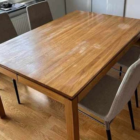 Den tjocka bordsskivan (ca 3 cm) ger en gedigen känsla och håller länge. Enkel och stilren design som passar i de flesta hem.