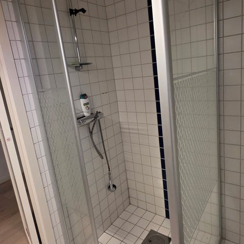 Duschkabin Genova 80x80x205 cm med hörnmodell och glasväggar. Köpt på Jem&Fix hösten 2025. Använd under en renovering av badrum.