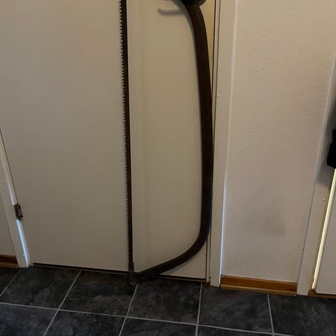 Äldre cirkelsåg monterad på träställning (110x70 cm, höjd 81 cm). Utrustad med större klinga och elkabel (3-fas). Ej testad.