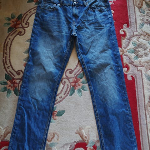 Säljer ett par blå jeans med rak passform och klassiska bakfickor. Jeansen har en tidlös look och är gjorda i denim, perfektum för dig som gillar enkel och stilren design.