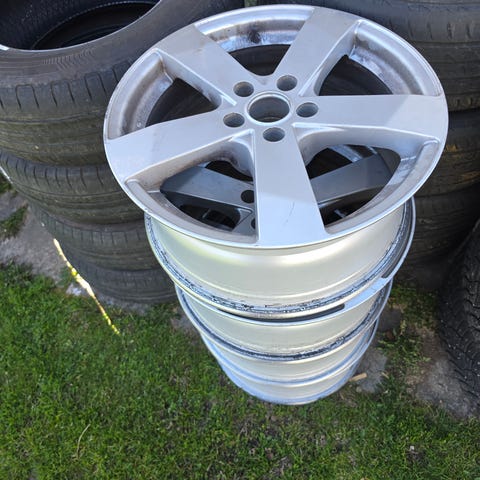 Fälgarna är på ”17 med en del synligt slitage.