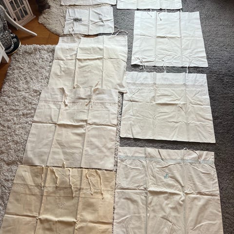 ett Paket med vintage kökshanddukar. 4st 50x70cm och 3st 45c60cm. Fläckar och smuts förekommer. Se alla bilderna. Fram och baksida.