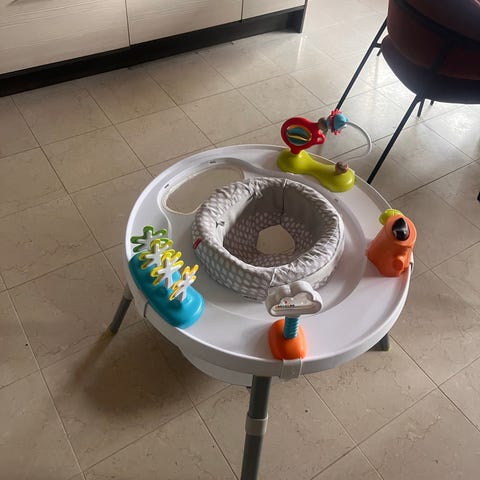 2. Gå & interagera: Barnet kan gå runt bordet och leka med aktiviteterna när de blir stadigare.