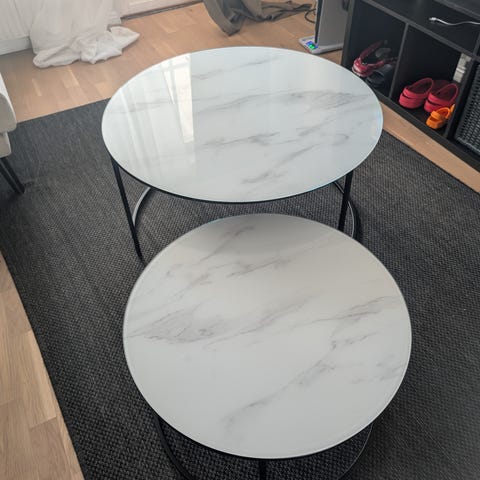 Säljer nu får fina soffbord med äkta carerra marmor i bra skick, bortet har måtten 80x80x45