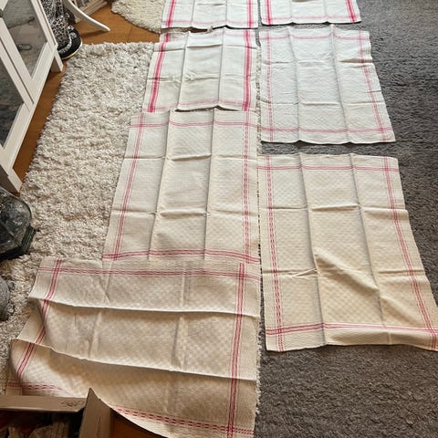 ett paket med gamla örngott. Missfärgningar finns. Se alla bilderna.