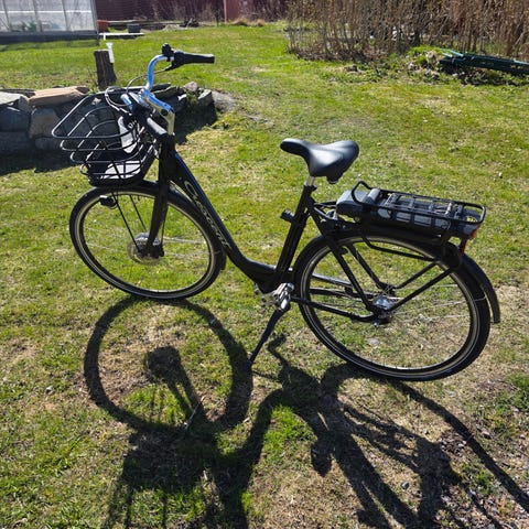 Elcykel köpt förra sommaren. 7växlar fotbroms batteri som räcker ca