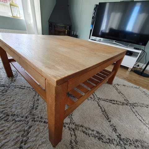 Rektangulärt soffbord i ek med hylla