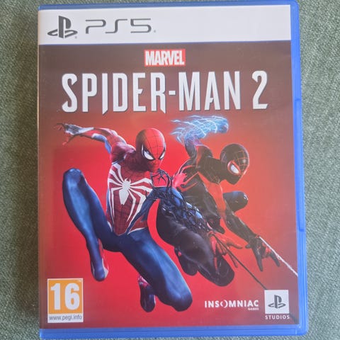 Marvel Spider-Man 2 till Playstation 5 på skiva. Originalfodral med omslag, redo för nästa spelare att ta över äventyret.