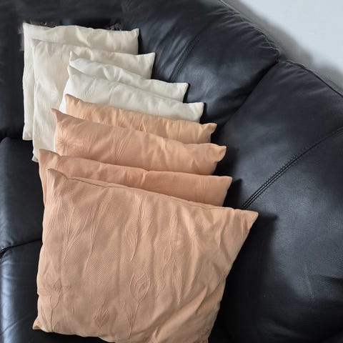 4 prydnadskuddar säljes. Skick -se bilder. Alla hela o rena. De två svarta tappat lite färg. Storlek 45x45