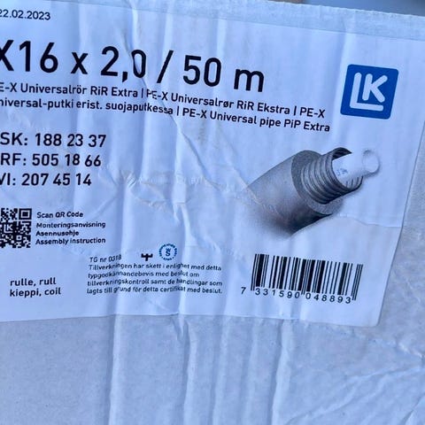 LK PAL A32 universalrör med isolering, längd 25 meter och dimension 3,0. Levereras på rulle med grå isoleringsjacka runt röret.