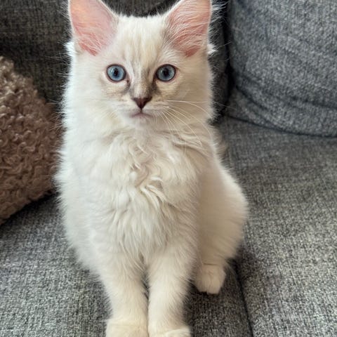 Våra fina Ragdoll kattungar är tillgängliga för tingning och kommer kunna hämtas efter 19 maj. Kullen som föddes 17 februari består av tre ungar varav två är honor och en hane(den i mitten på bild tre). Vid hämtning kommer katterna vara avmaskade, vaccinerade , chippade och besiktigade.