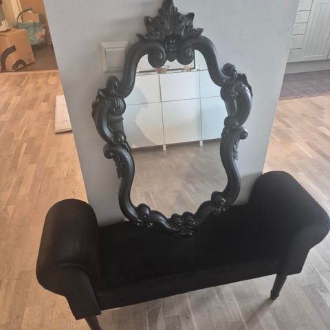 Fin vadderat sittdyna med beige plysch. Spegel på båda sidor.