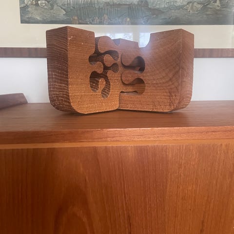 Detta är en vintage piphållare i trä, sannolikt från 1950- eller 1960-talet.